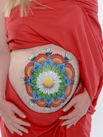 Es werden nur hochwertige Farben aus dem Bodypainting- und Kinderschminkbereich benutzt, also dermatologisch getestet und absolut unbedenklich für die Haut und dein Baby.